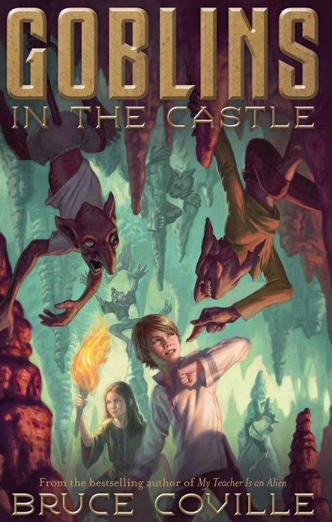 From issue #75 āThe Books that Built Meā is a childhood favorite Goblins in the Castle by Bruce Coville is missing from the PDF checklist! My third-grade teacher, Mrs. Stone, read this book aloud to us chapter by chapter before recess. It follows William, an orphan at Toad-in-a-Cage Castle, who uncovers a man living in the dungeons who takes him on an epic journey. Every chapter ended in a major cliffhanger, delivered to audible groans from a room of eight-year-olds who suddenly wanted to skip recess for one more pageā¦